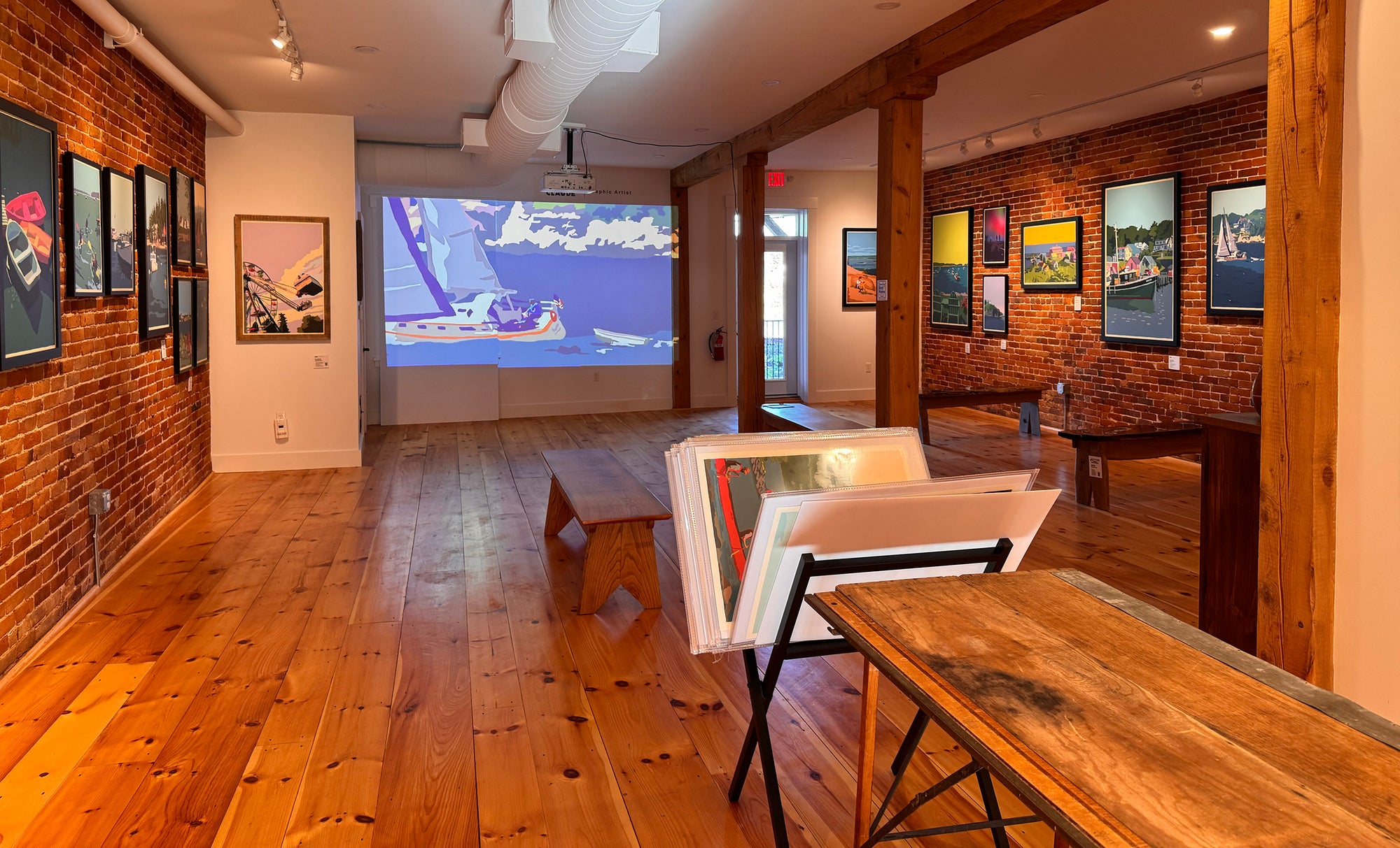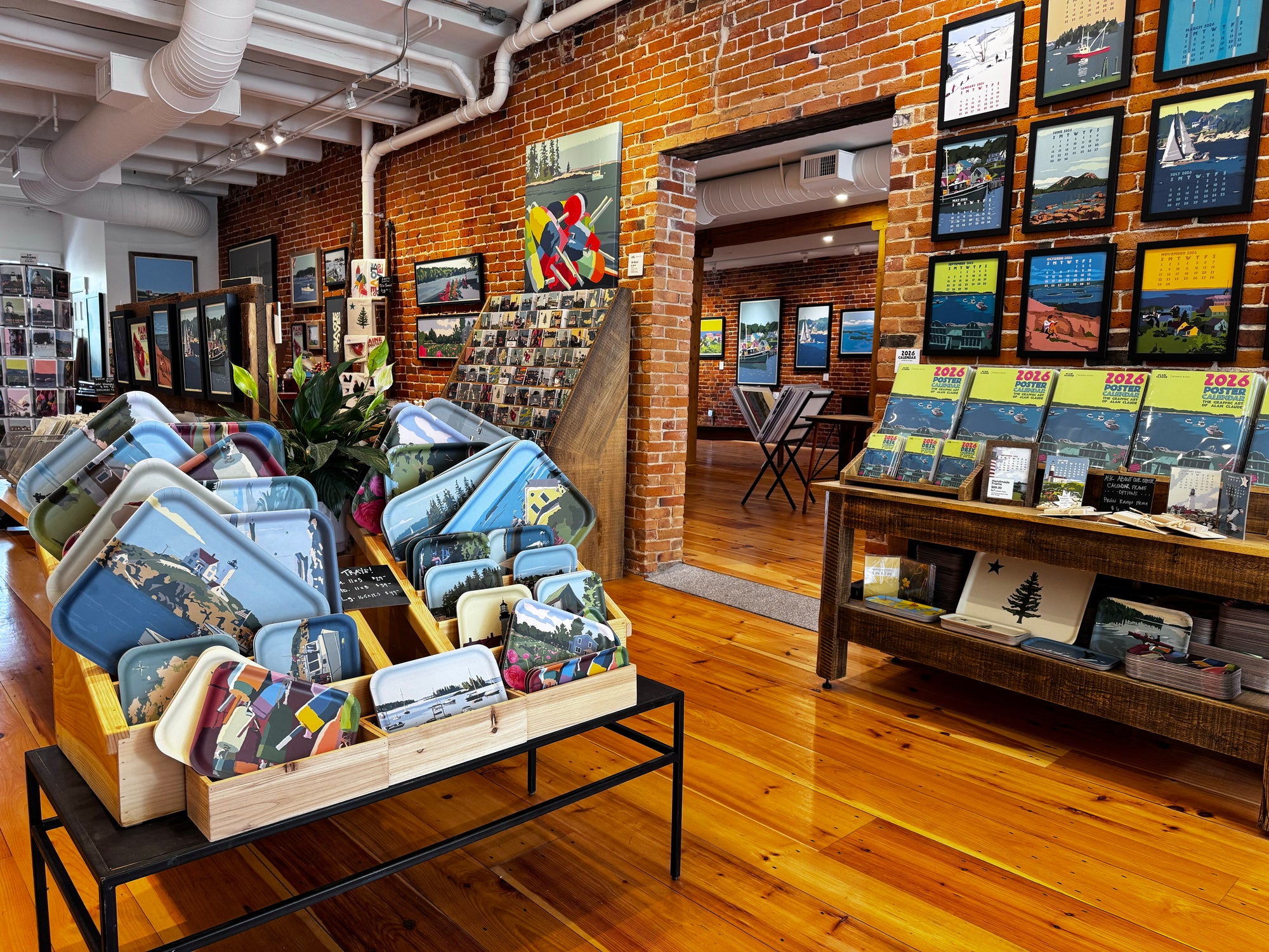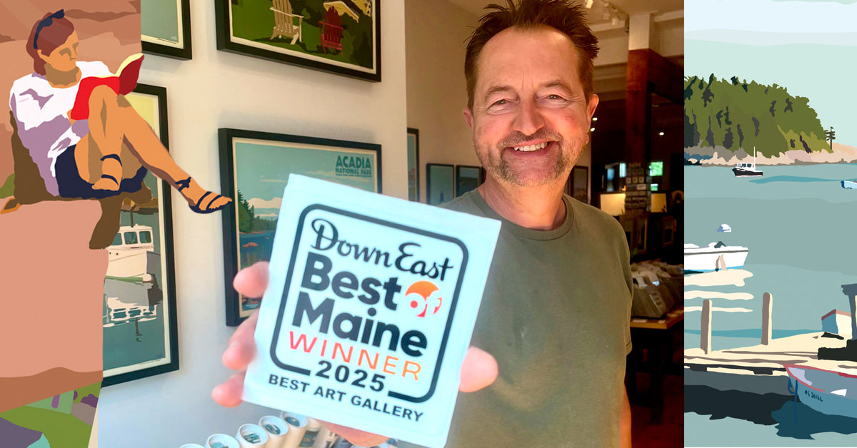 Down East Magazine's Best Art Gallery In Maine 2025 Winner! Overlooking the Kennebec River, the Alan Claude Gallery is located in historic downtown Gardiner. Alan Claude's Poster Style art of lighthouses, coastal and lake scenes of Maine and other New England states are boldly displayed in the artist's beautifully restored buildings and gallery. Alan Claude's Maine Calendar series are among one of the most popular gifts for visitors and locals alike. Other items include coasters, stickers and notecards. Come and check it out or order online - $75 Minimum Order for FREE SHIPPING - We ship within 1 to 3 days for most items, larger framed prints such as 24x36 and Grand Views will ship in 5-9 days.