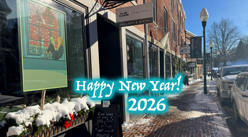 Down East Magazine's Best Art Gallery In Maine 2025 Winner! Overlooking the Kennebec River, the Alan Claude Gallery is located in historic downtown Gardiner. Alan Claude's Poster Style art of lighthouses, coastal and lake scenes of Maine and other New England states are boldly displayed in the artist's beautifully restored buildings and gallery. Alan Claude's Maine Calendar series are among one of the most popular gifts for visitors and locals alike. Other items include coasters, stickers and notecards. Come and check it out or order online - $75 Minimum Order for FREE SHIPPING - We ship within 1 to 3 days for most items - ALL FRAMED PRINTS including 24x36 & 36x53 prints will ship after January 10th 2026