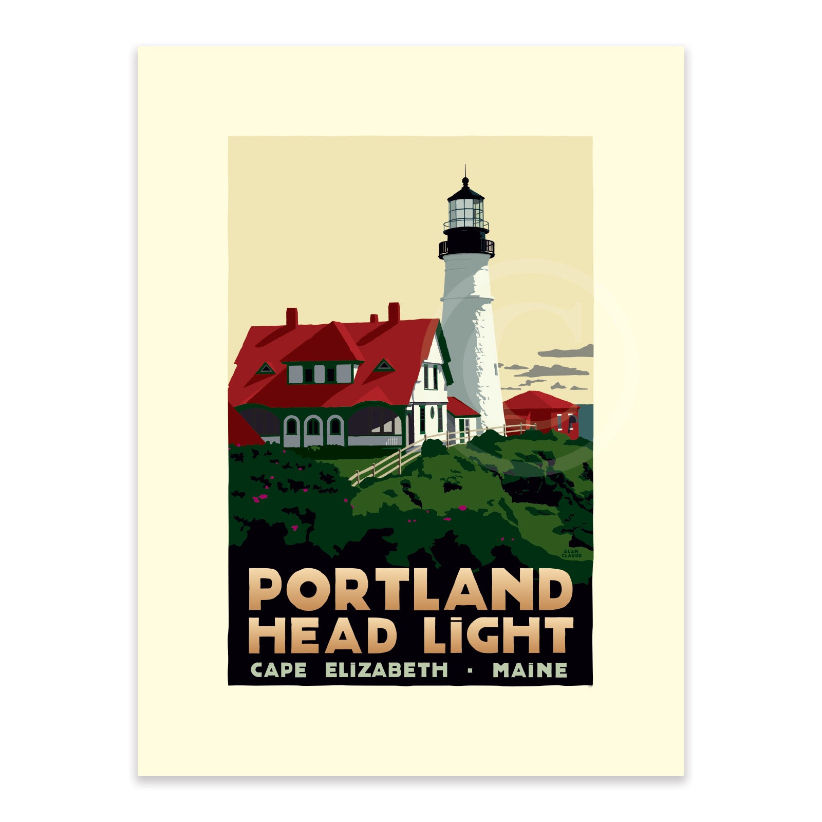 Portland Head Light Lighthouse Art Print 18" x 24" Travel Poster (Large Border) By Alan Claude - Maine