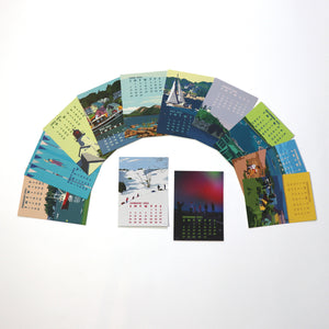 2026 Art Desk Art Calendar (5x7) by graphic artist Alan Claude features his latest stunning vintage retro art images of everyday moments in New England. This year's release is as popular as ever, as the 2026 calendar brings a little joy to all, making it a perfect gift from Maine. Inspired by bold, Poster Style graphics from the 1920's and 30's, mixed in with a little Edward Hopper, a heap of drama and a teaspoon of serenity. 12 beautifully printed 5x7 images on recycled FSC heavy 100 lb paper. Printed with Certified Wind Power. - Includes Maine stickers and bookmarks!