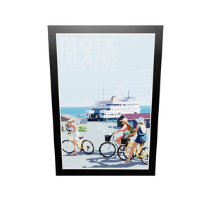 Block Island Bicycle Girls Art Print 24" x 36" Framed Travel Poster By Alan Claude - Rhode Island