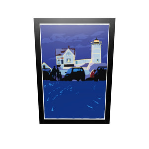 Christmas At The Nubble Art Print 24" x 36" Framed Wall Poster By Alan Claude