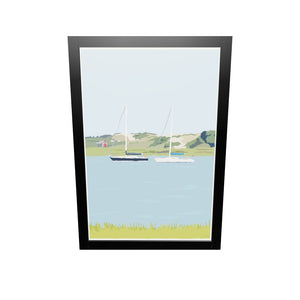 Sailboats at Sandy Neck Art Print 24" x 36" Framed Wall Poster By Alan Claude Massachusetts