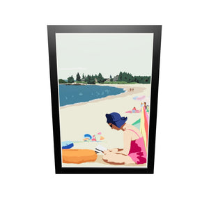 Good Book On A Beach Day Art Print 24" x 36" Framed Wall Poster By Alan Claude - Maine