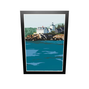 Indian Island Light Art Print 24" x 36" Framed Wall Poster By Alan Claude - Maine
