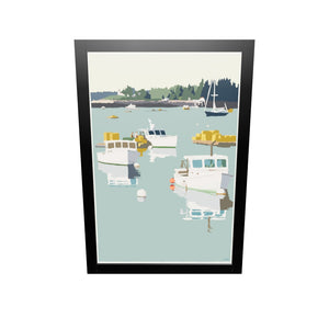 Lobster Boats on a Sunday Morning Art Print 24" x 36" Framed Wall Poster By Alan Claude - Maine