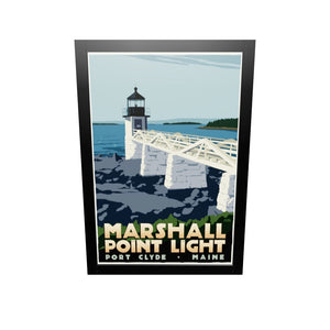 Marshall Point Light Art Print 24" x 36" Framed Travel Poster By Alan Claude - Maine