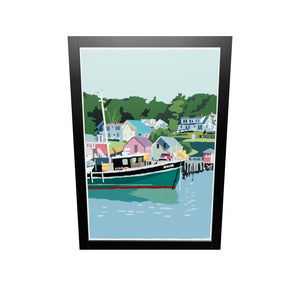 New Harbor Art Print 24" x 36" Framed Wall Poster By Alan Claude - Maine