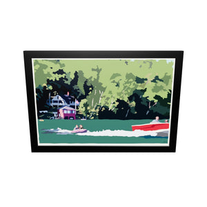 Tubing On A Lake Art Print 24" x 36" Framed Wall Poster By Alan Claude