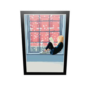 Good Book on a Snow Day Art Print 24" x 36" Framed Wall Poster By Alan Claude - Maine