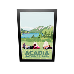 Hikers in Acadia National Park Art Print 24" x 36" Framed Wall Poster By Alan Claude - Maine
