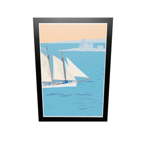 Schooner at the Cuckolds Art Print 24" x 36" Framed Wall Poster By Alan Claude - Maine