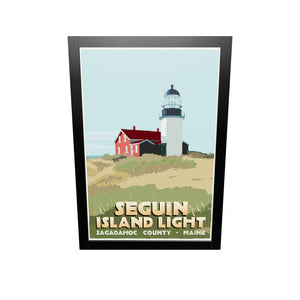 Seguin Island Light Art Print 24" x 36" Framed Travel Poster By Alan Claude - Maine