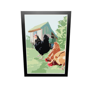 Spring Chickens Art Print 24" x 36" Framed Wall Poster By Alan Claude - Maine