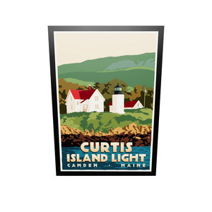 Curtis Island Light Art Print 36" x 53" Framed Travel Poster By Alan Claude - Maine