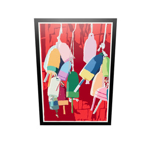 Lobster Buoys Art Print 36" x 53" Framed Wall Poster By Alan Claude - Maine