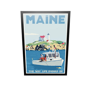 Lobstering at the Nubble Maine The Way Life Should Be Framed Art Print 36" x 53" Travel Poster By Alan Claude - Maine