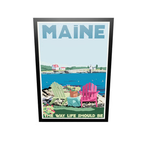 Chairs Overlooking Ram Island Art Print Maine The Way Life Should Be 36" x 53" Framed Wall Poster - Maine