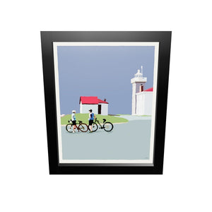 Cyclists at Watch Hill Lighthouse Art Print 8" x 10" Vertical Framed Wall Poster By Alan Claude - Rhode Island