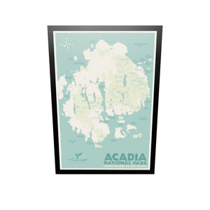 Acadia National Park Map Art Print 36" x 53" Framed Travel Poster By Alan Claude - Maine