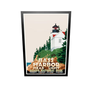 Bass Harbor Head Light Art Print 36" x 53" Framed Travel Poster By Alan Claude - Maine