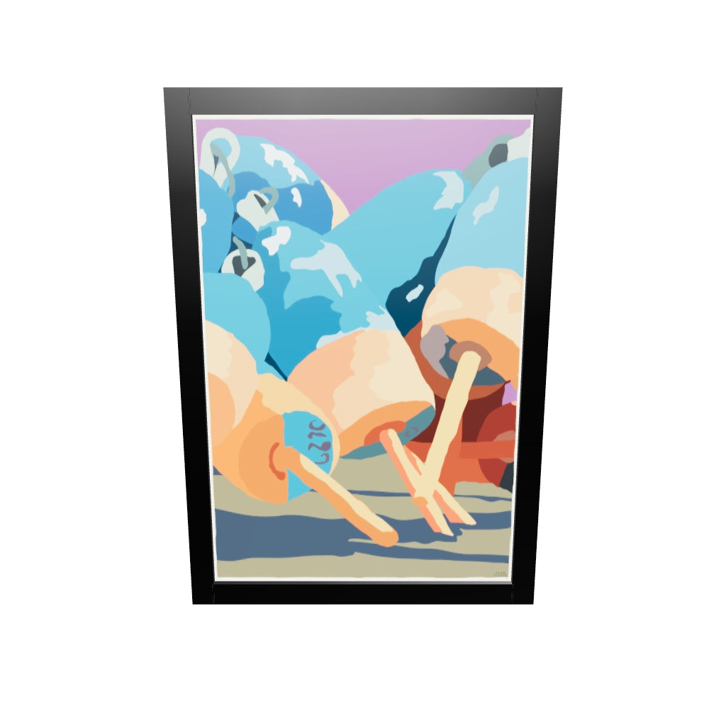 Blue & Orange Lobster Buoys Art Print 8" x 10" Framed Wall Poster By Alan Claude