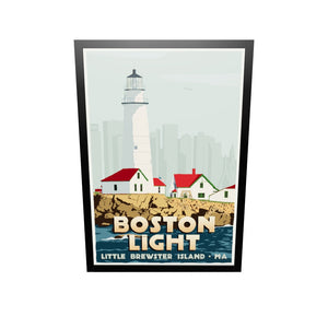 Boston Light Art Print 36" x 53" Framed Travel Poster By Alan Claude - Massachusetts