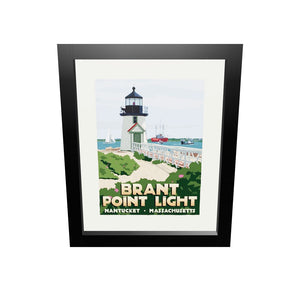 Brant Point Light Art Print 8" x 10" Framed Travel Poster By Alan Claude - Massachusetts
