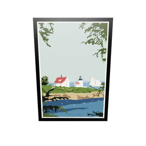 Camden Lighthouse Art Print 36" x 53" Framed Wall Poster By Alan Claude - Maine