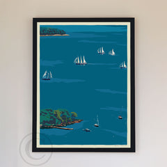 Schooners in Camden Harbor Art Print 24" x 36" Framed Wall Poster By Alan Claude - Maine