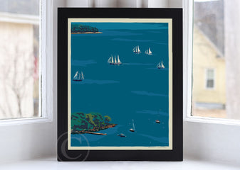 Schooners in Camden Harbor Art Print 18" x 24" Wall Poster By Alan Claude - Maine