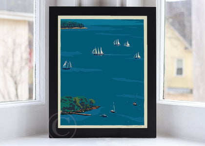 Schooners in Camden Harbor Art Print 8" x 10" Framed Wall Poster By Alan Claude - Maine