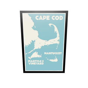Cape Cod, Martha's Vineyard, Nantucket Map Art Print 36" x 53" Framed Travel Poster By Alan Claude - Massachusetts