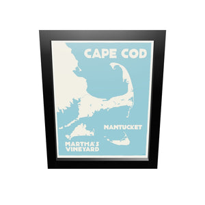 Cape Cod, Martha's Vineyard, Nantucket Map Art Print 8" x 10" Framed Travel Poster By Alan Claude - Massachusetts