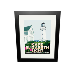 Cape Elizabeth Light Art Print 8" x 10" Framed Travel Poster By Alan Claude - Maine