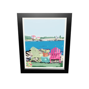 Chairs Overlooking Ram Island Art Print 8" x 10" Framed Wall Poster By Alan Claude - Maine