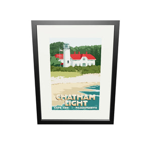 Chatham Light Art Print 18" x 24" Framed Travel Poster By Alan Claude - Massachusetts