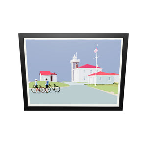 Cyclists at Watch Hill Lighthouse Art Print 18" x 24" Horizontal Framed Wall Poster By Alan Claude - Rhode Island