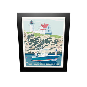 Fishing at the Nubble Art Print 8" x 10" Framed Travel Poster By Alan Claude - Maine