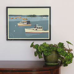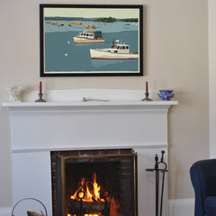 Lobster Boats in Friendship Art Print 24" x 36" Framed Wall Poster By Alan Claude - Maine