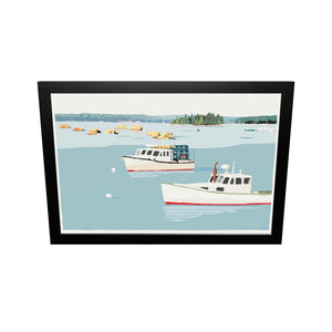 Lobster Boats in Friendship Art Print 24" x 36" Framed Wall Poster By Alan Claude - Maine