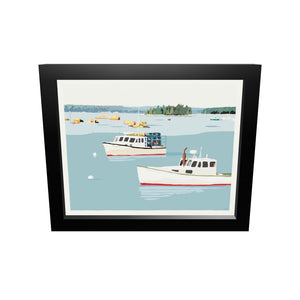 Lobster Boats in Friendship Art Print 8" x 10" Horizontal Framed Wall Poster By Alan Claude - Maine