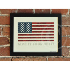 GIVE IT YOUR BEST! USA Flag Art Print 18" x 24" Framed