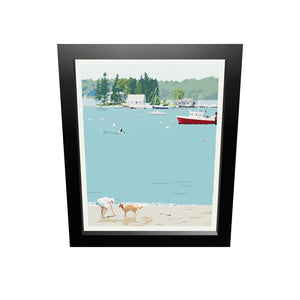 Golden Retriever at Beach "Go Fetch" Art Print 8" x 10" Framed Wall Poster By Alan Claude - Maine
