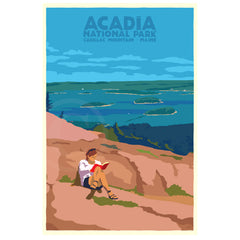 Good Book In Acadia Travel Poster Art Print 36" x 53" Wall Poster By Alan Claude - Maine