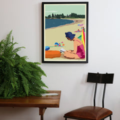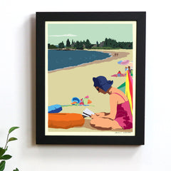 Good Book On A Beach Day Art Print 24" x 36" Framed Wall Poster By Alan Claude - Maine