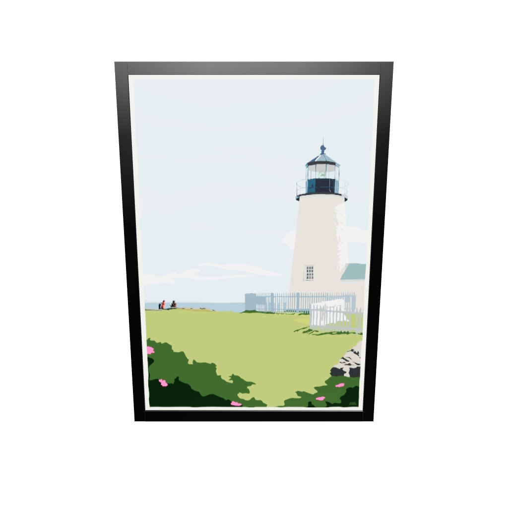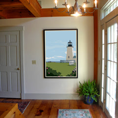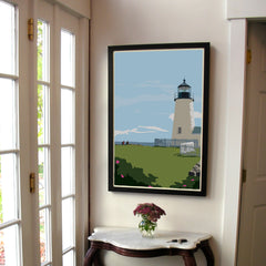Pemaquid Point Light Hikers Art Print 24" x 36" Framed Wall Poster By Alan Claude - Maine