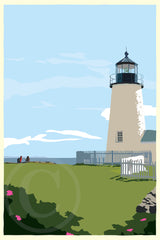 Pemaquid Point Light Hikers Art Print 24" x 36" Wall Poster By Alan Claude - Maine