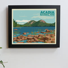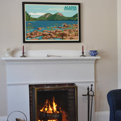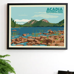 Jordan Pond Travel Poster Art Print 24" x 36" Framed Wall Poster By Alan Claude - Maine