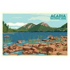Jordan Pond Travel Poster Art Print 36" x 53" Wall Poster By Alan Claude - Maine